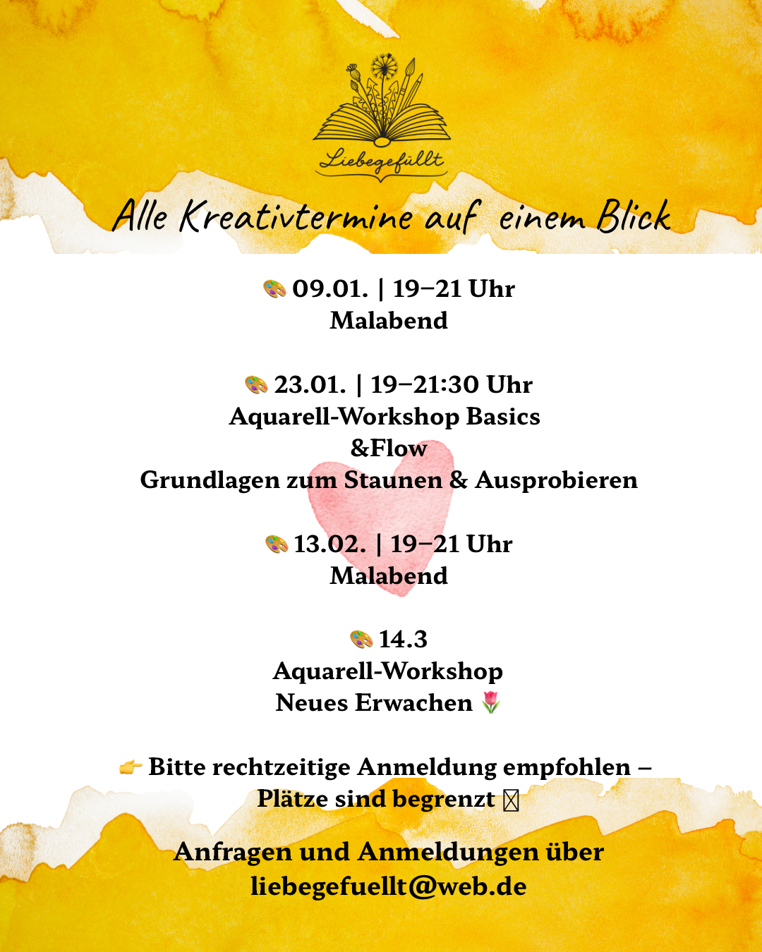 Wenn dich eine Kreativveranstaltung anspricht oder Du Fragen hast, schreib mir gern eine E-Mail.