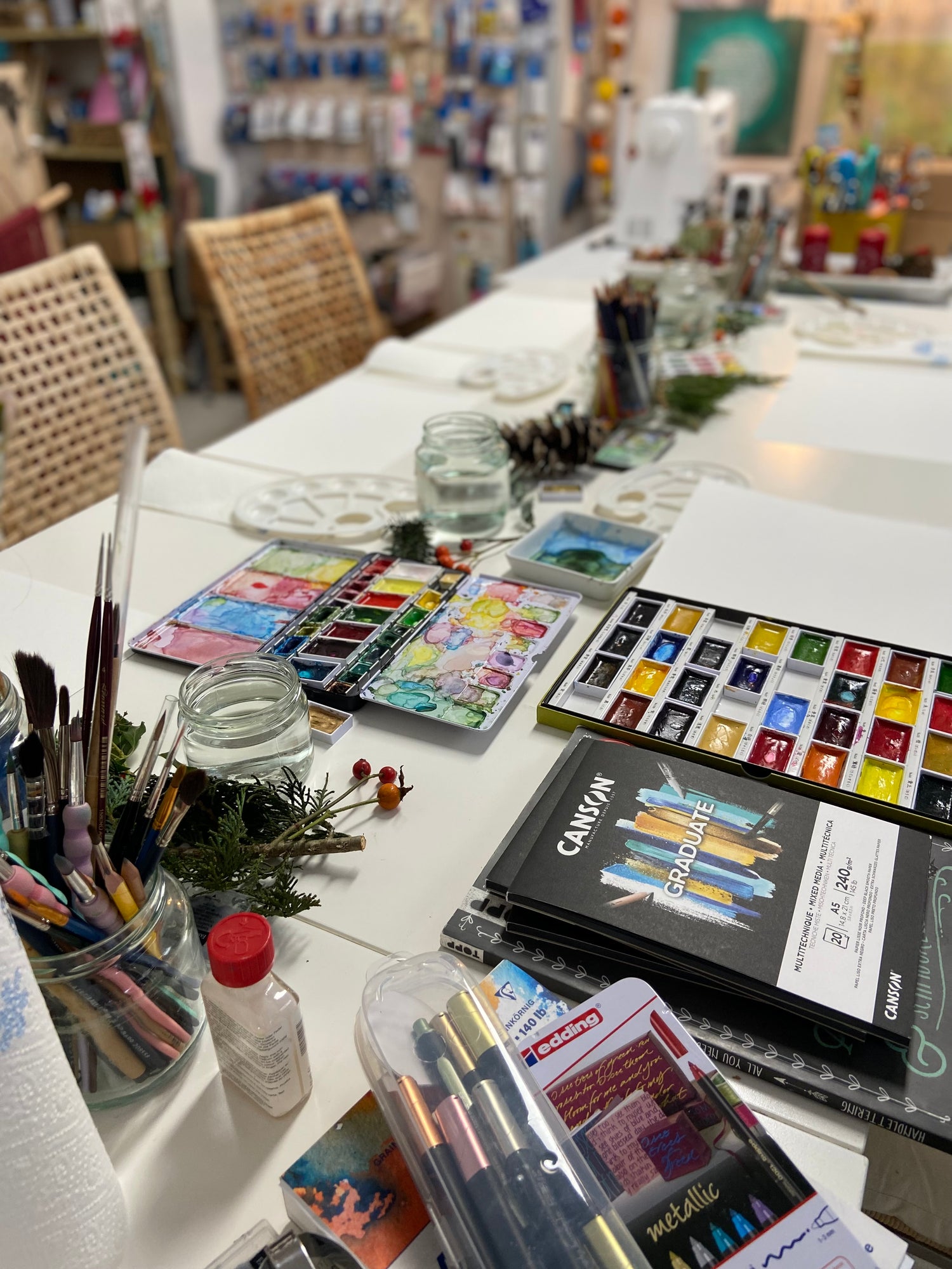 Material, Raum und Atmosphäre sind da. Du darfst einfach anfangen. Kein Thema, keine Anleitung, mit Begleitung.